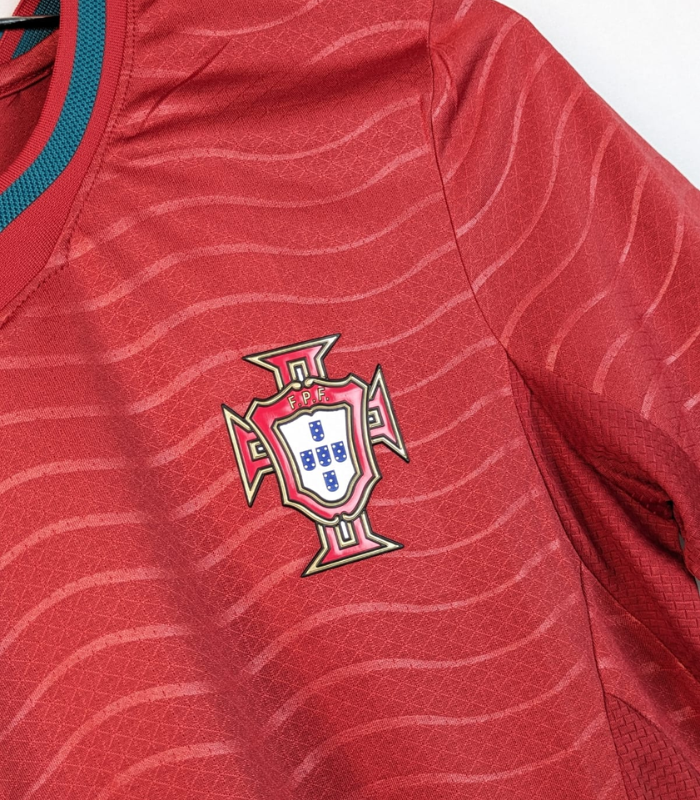 The embroidered national crest sits proudly over the heart, symbolizing unity, resilience, and the fire that drives every Portuguese player and fan.